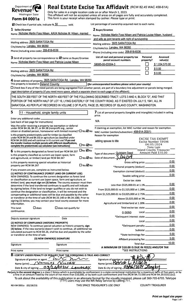 | 3 | 11/01/2023 | QCD | Quit Claim Deed | ZWEEGMAN, RAYMOND E | ZWEEGMAN, TANYA A | | | $0.00 | 58432 | 4566447 |