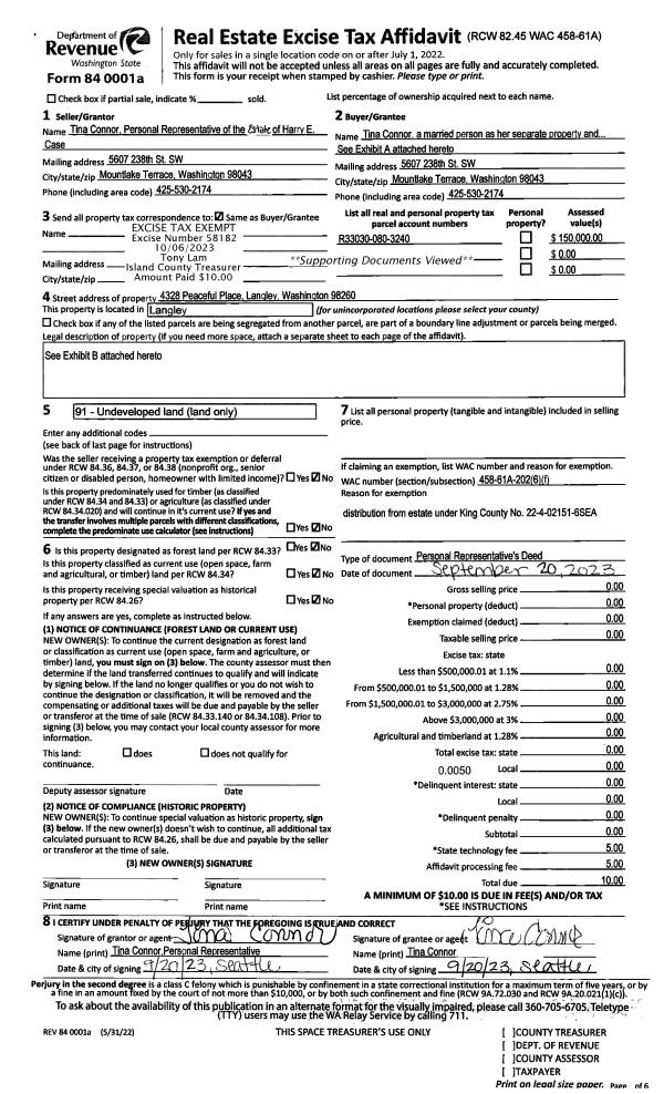 | Mailing Address: | CARMEN SOTO 1023 CHARDONNAY PL CAMANO ISLAND, WA 98282 | % Ownership: | 100.0000000000% |