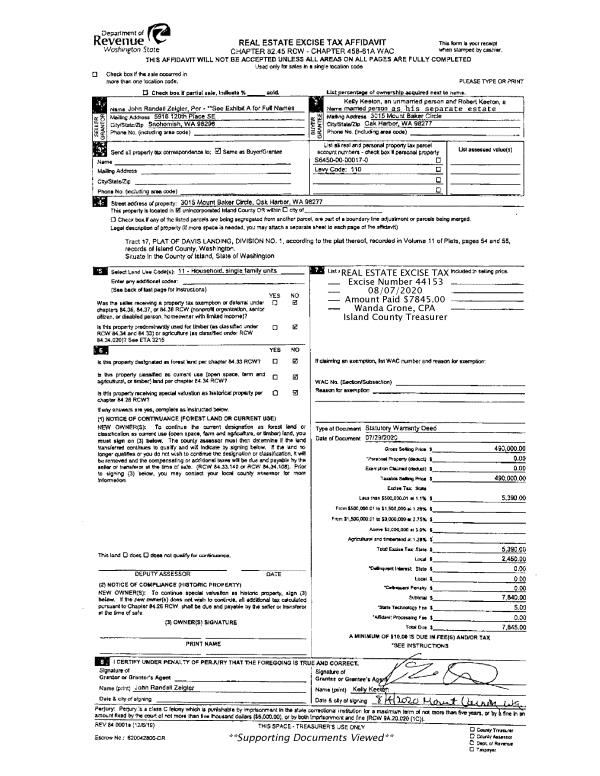 | Mailing Address: | 375 RATEAU DR CAMANO ISLAND, WA 98282 | % Ownership: | 100.0000000000% |