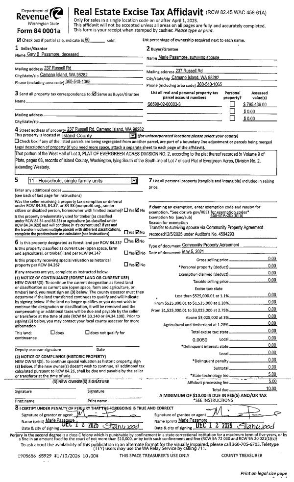 | 1 | 10/01/1996 | WD | Warranty Deed | TALLMAN, JACK G | CENTRAL, WHIDBEY I | | | $45,000.00 | 63570 | 96017466 |