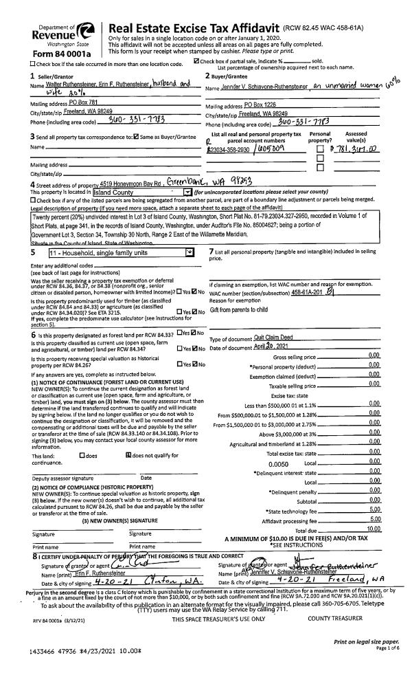 | Mailing Address: | CAROLE HANSEN PO BOX 223 CLINTON, WA 98236-0223 | % Ownership: | 100.0000000000% |