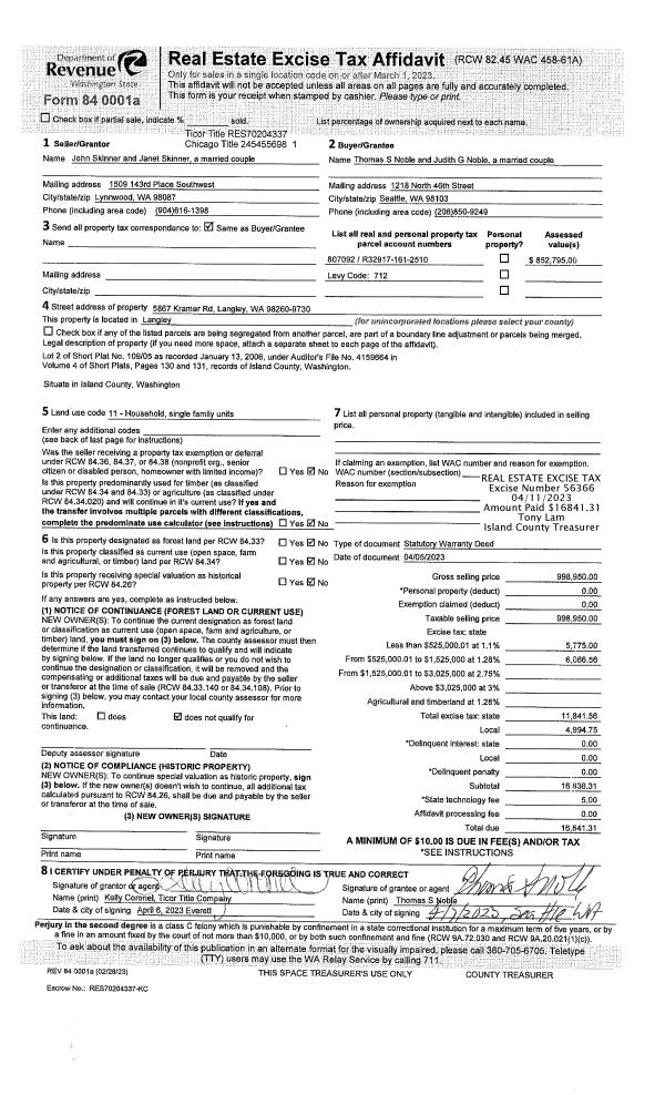 | 4 | 07/01/1997 | WD | Warranty Deed | ZAHNER, SHIRLEY J | STANGVIK, ERIK & | | | $290,000.00 | 72357 | 97011107 |