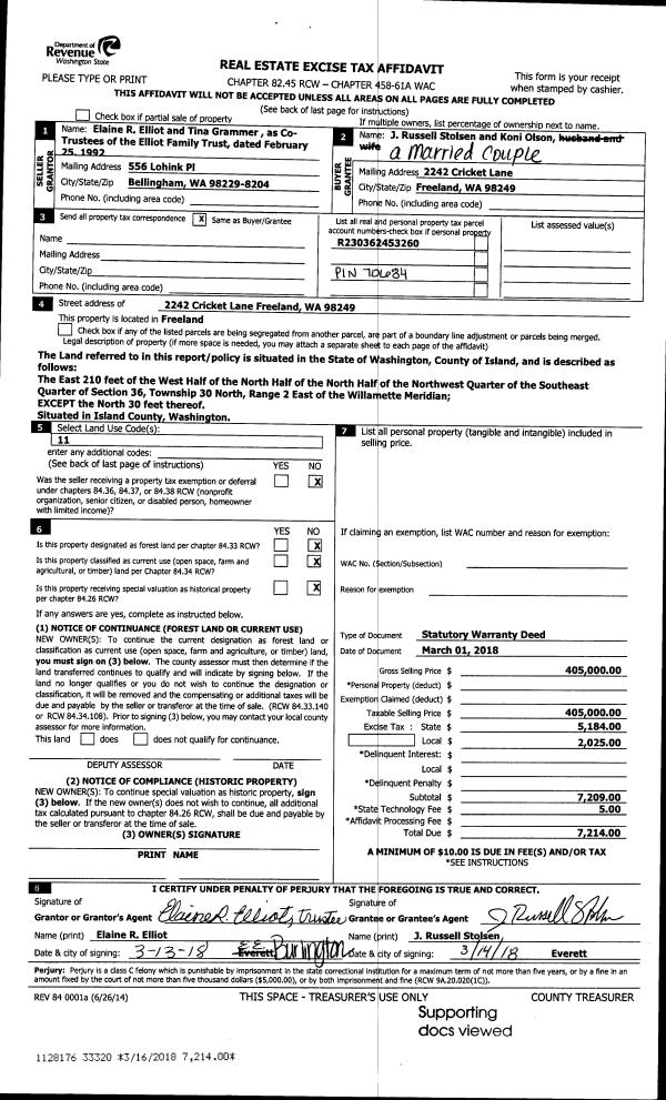 | 3 | 01/29/2018 | WD | Warranty Deed | DILORENZO, CAROLIN B | ISLAND COUNTY | | | $1,275,000.00 | 32793 | 4438395 |