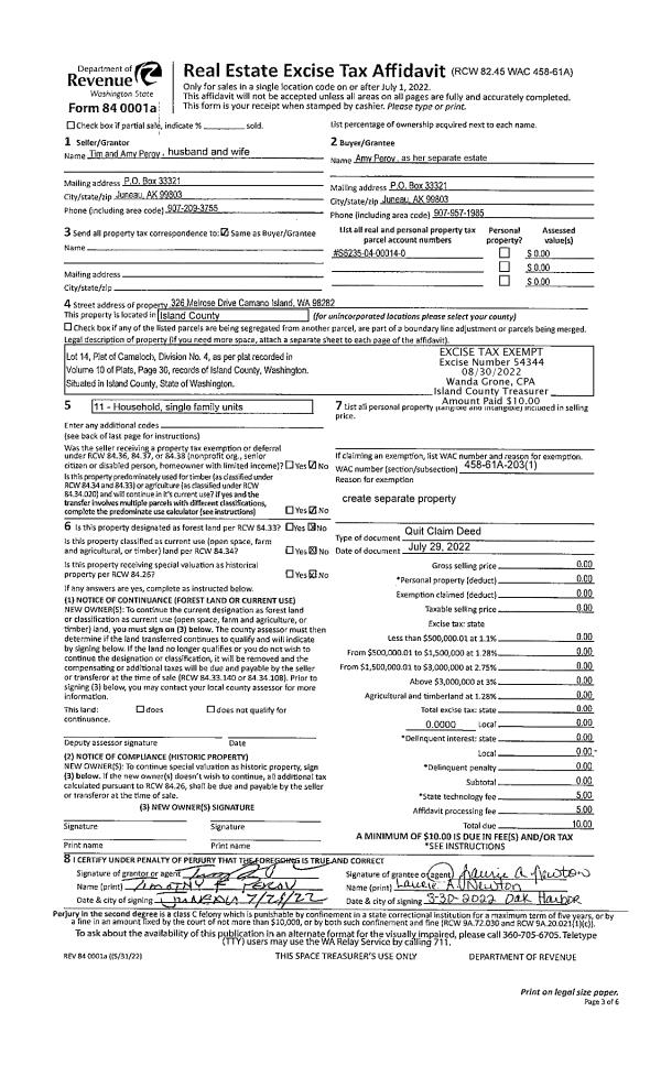 | Mailing Address: | 96 S DRY LAKE RD CAMANO ISLAND, WA 98282 | % Ownership: | 100.0000000000% |