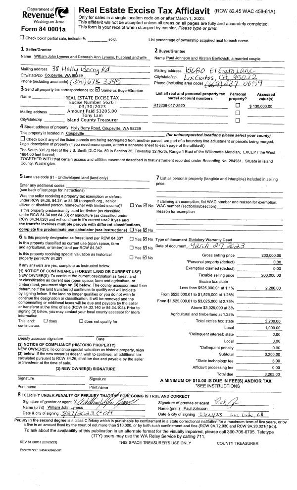 | Mailing Address: | 4949 JONES RD OAK HARBOR, WA 98277-9649 | % Ownership: | 100.0000000000% |