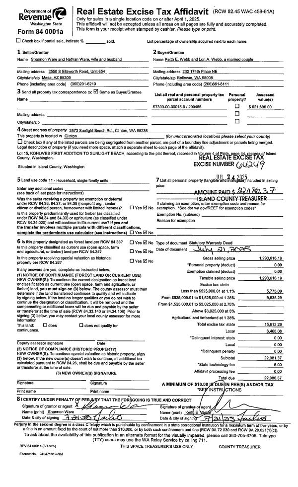 | Mailing Address: | 890 MARGIE ANN DRIVE CAMANO ISLAND, WA 98282 | % Ownership: | 100.0000000000% |
