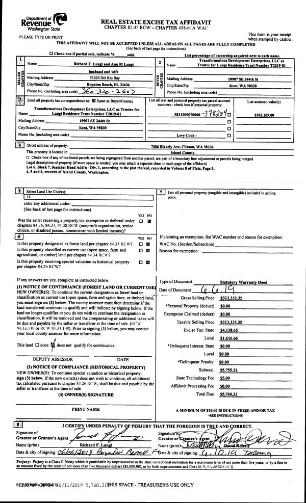 | Mailing Address: | ALEXA LYN TWETEN 1226 BEACH DR CAMANO ISLAND, WA 98282 | % Ownership: | 100.0000000000% |