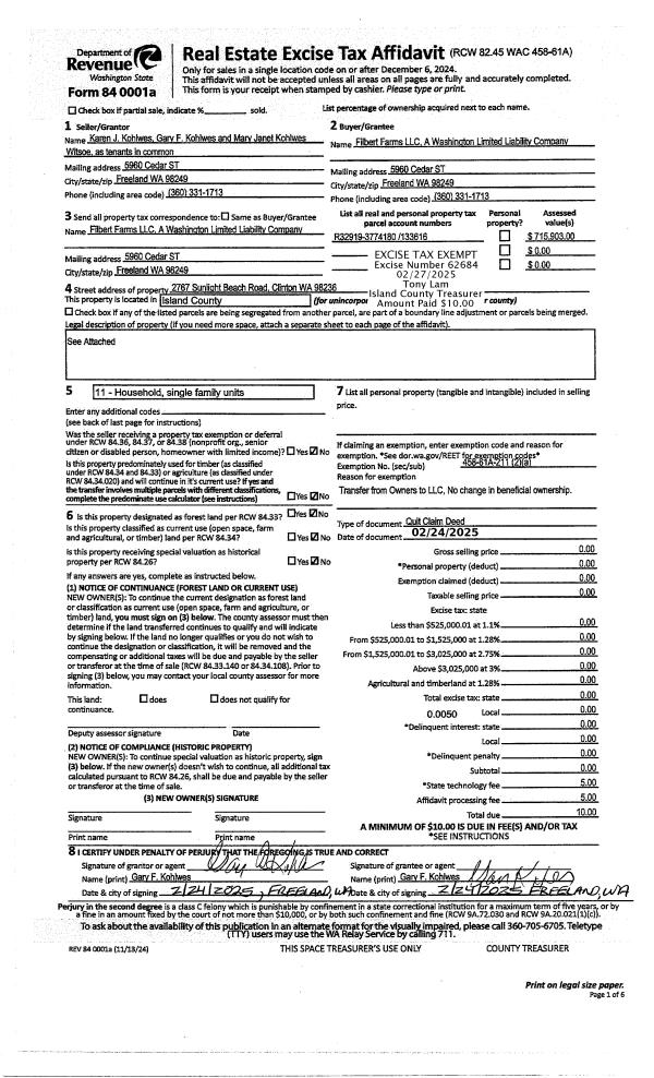 | Mailing Address: | PO BOX 713 COUPEVILLE, WA 98239-0713 | % Ownership: | 100.0000000000% |