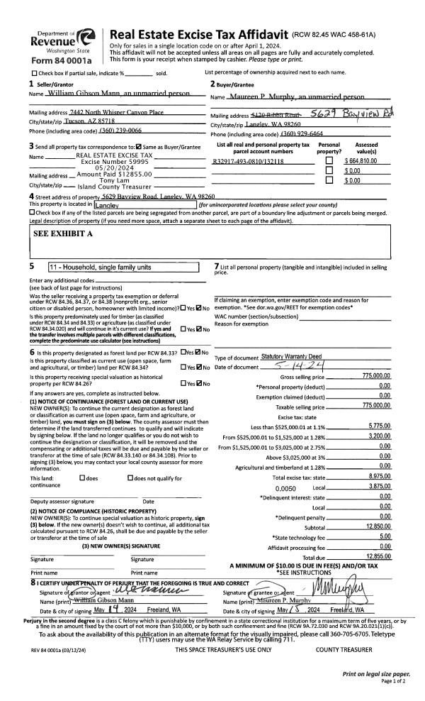| Mailing Address: | ANTOINETTE BLYNN 1630 SOUTHWEST 10TH AVE OAK HARBOR, WA 98277 | % Ownership: | 100.0000000000% |