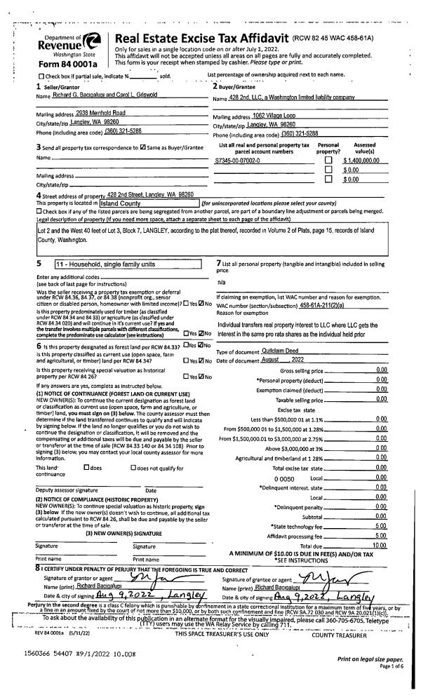 | Mailing Address: | SUSAN G SCHULTZ 79 SUCIA CT CAMANO ISLAND, WA 98282-6575 | % Ownership: | 100.0000000000% |