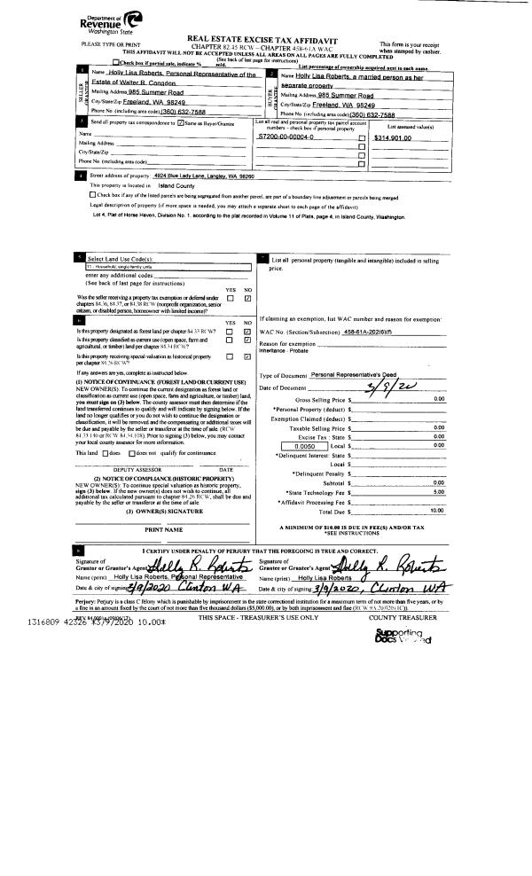 | Mailing Address: | 282 SHEPARDS LN CAMANO ISLAND, WA 98282 | % Ownership: | 100.0000000000% |