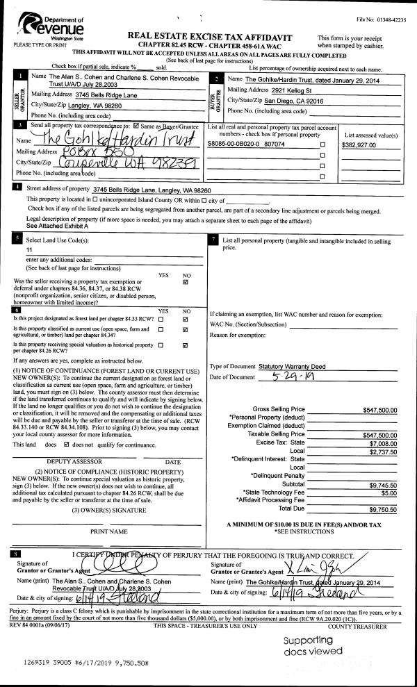 | Mailing Address: | MAXWELL J LEMAY 3653 BRITZMAN LOOP CLINTON, WA 98236 | % Ownership: | 100.0000000000% |