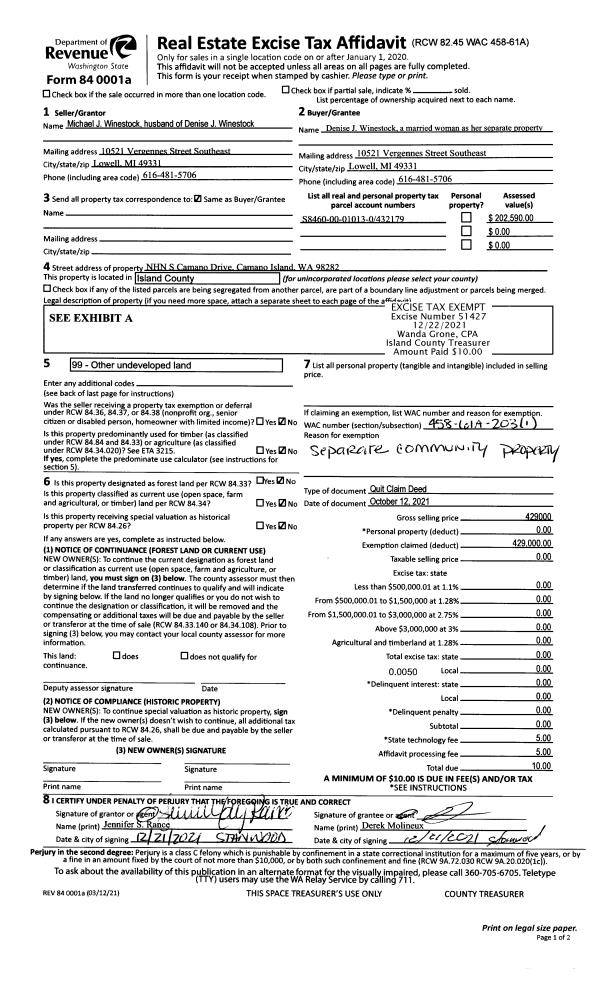 | Mailing Address: | 3271 FOX SPIT RD LANGLEY, WA 98260 | % Ownership: | 100.0000000000% |