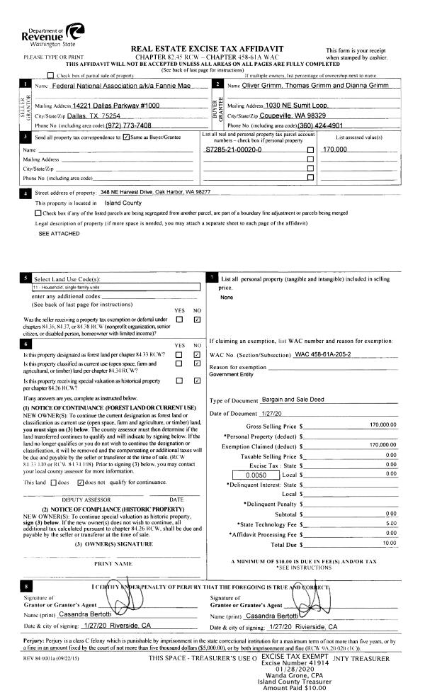 | Mailing Address: | 2420 HILLIS DR LANGLEY, WA 98260 | % Ownership: | 100.0000000000% |