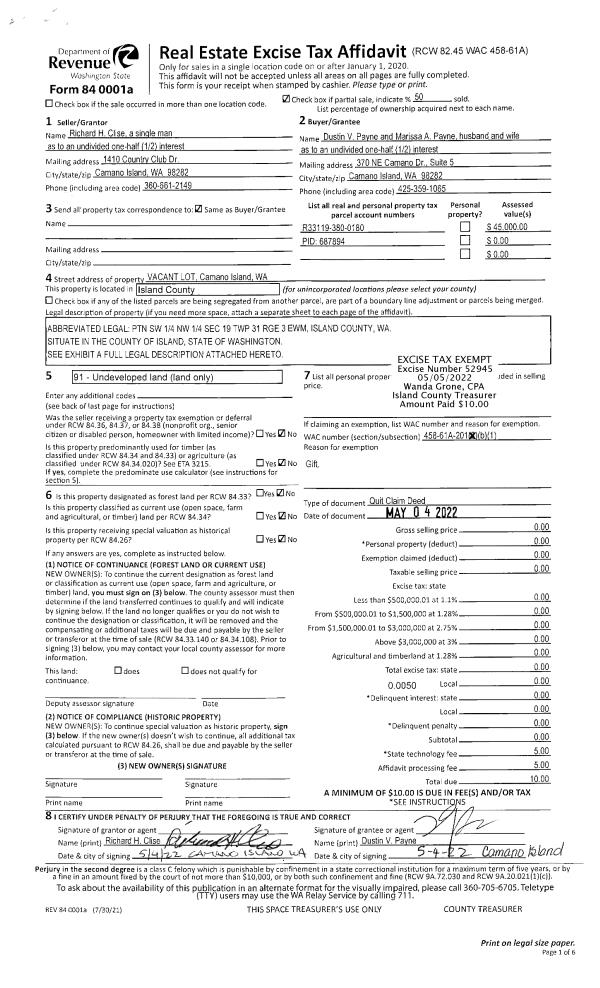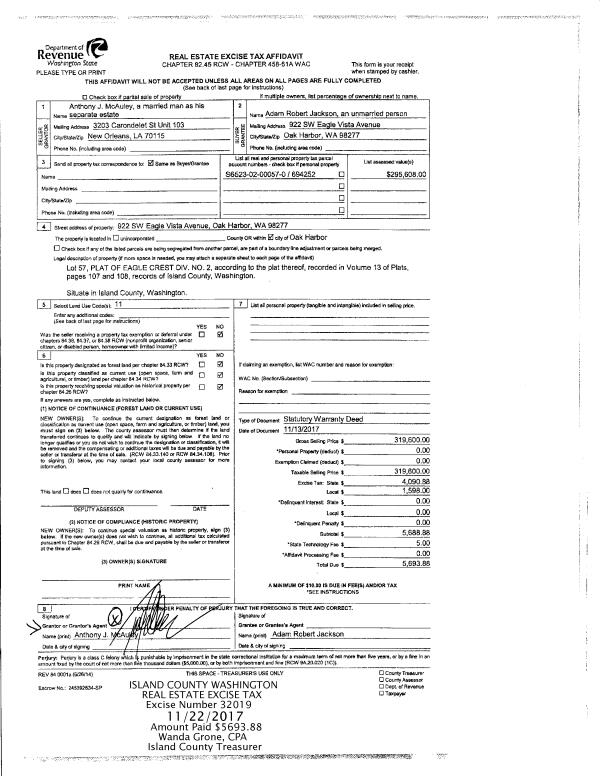 | Mailing Address: | 1794 CASCADE VIEW DR CAMANO ISLAND, WA 98282 | % Ownership: | 100.0000000000% |