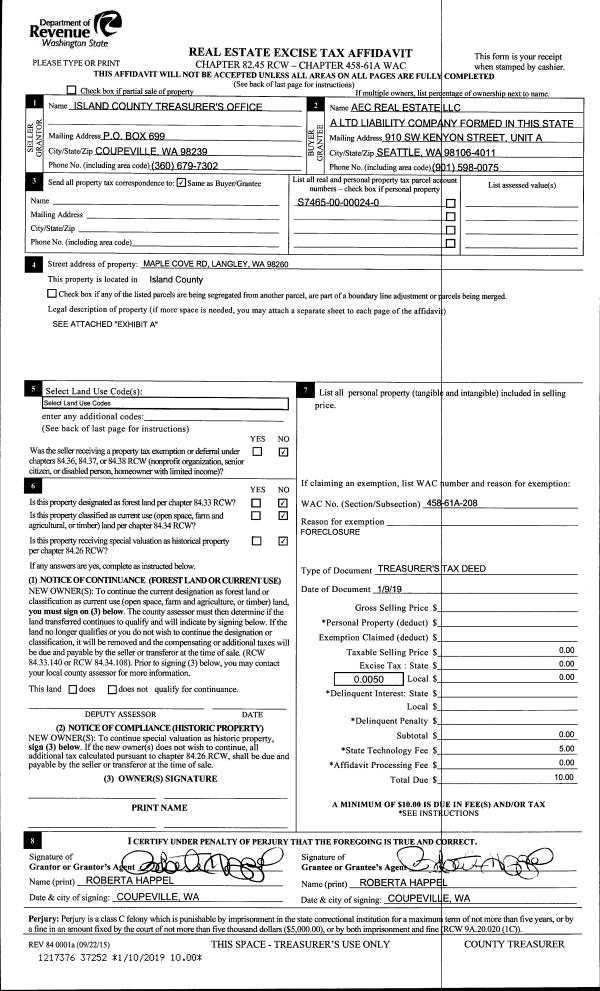 | Mailing Address: | 1263 LAWSON RD CAMANO ISLAND, WA 98282 | % Ownership: | 100.0000000000% |