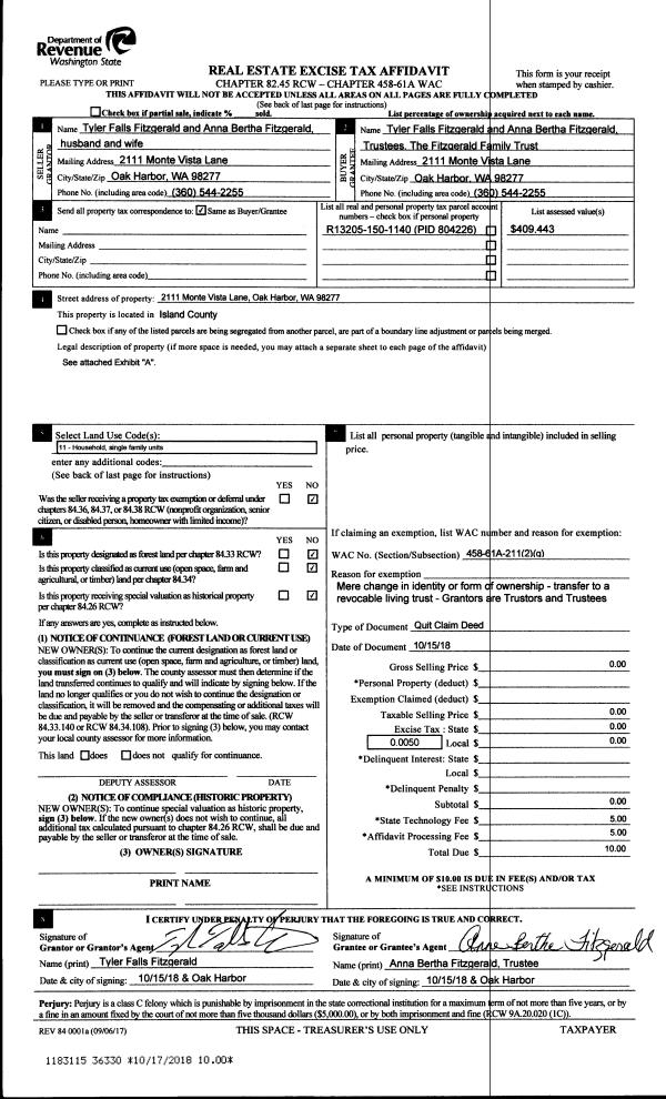 | Mailing Address: | MARGARET LACABANNE FOARD, TTEE 3256 KILLION LANE OAK HARBOR, WA 98277 | % Ownership: | 100.0000000000% |