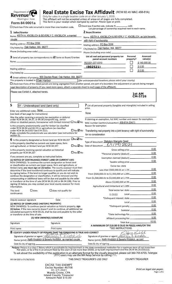 | Tax Area: | 719 - APPRAISER-S Whid Schl Dist, outside Langley, vacant & 50 acres or less | Land Use Code | 91 |