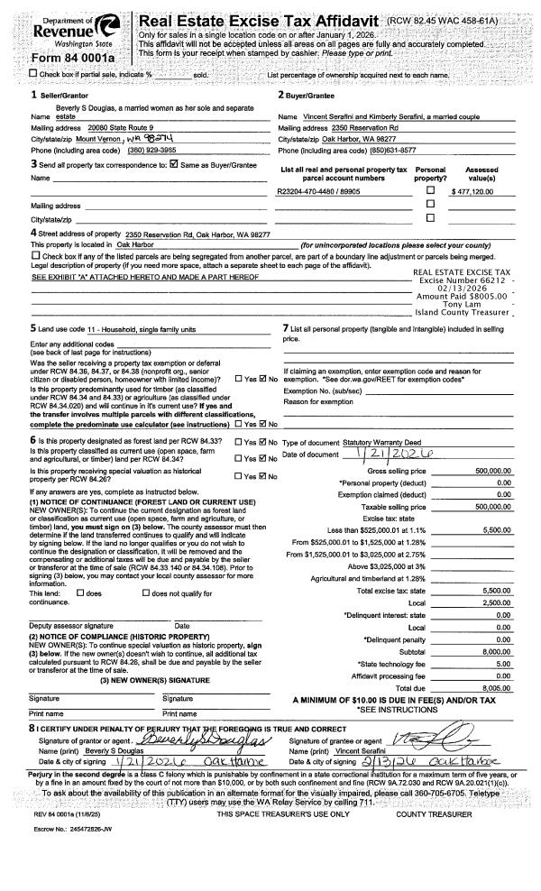 | Tax Area: | 712 - APPRAISER-S Whid Schl Dist, outside Langley, improved, greater than 1 acre |