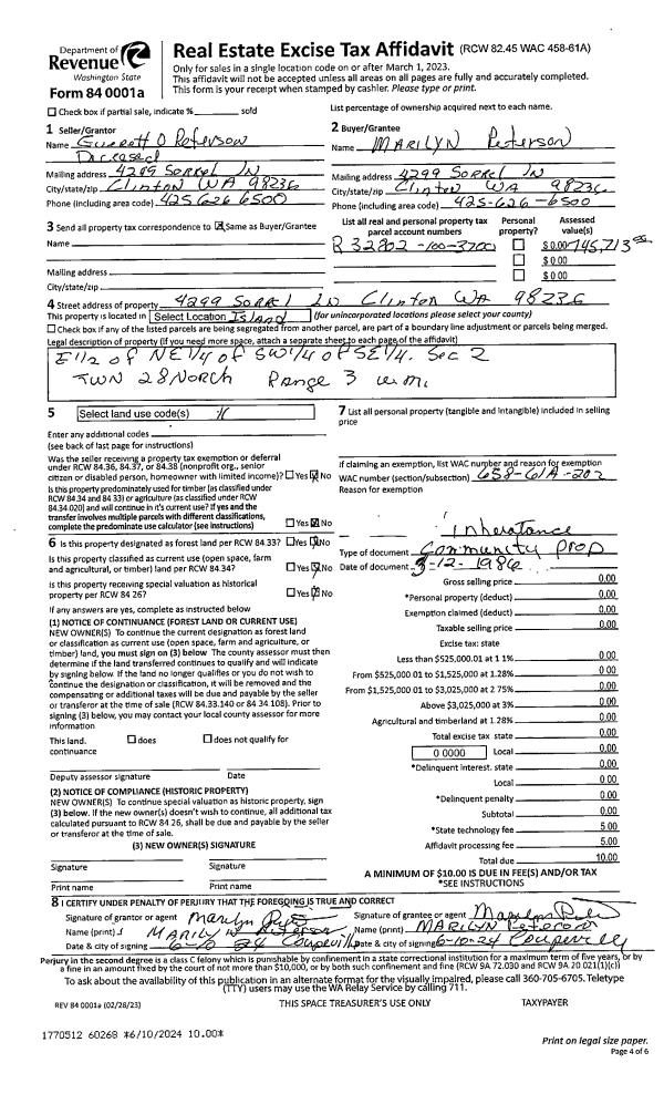 | Mailing Address: | RICHELLE M LANPHEAR 65 NE NUNAN LOOP OAK HARBOR, WA 98277 | % Ownership: | 100.0000000000% |