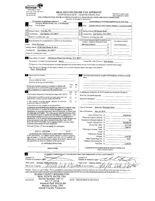 | Mailing Address: | 603 NW GLENWOOD CT COUPEVILLE, WA 98239 | % Ownership: | 100.0000000000% |