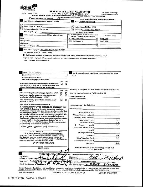 | Tax Area: | 712 - APPRAISER-S Whid Schl Dist, outside Langley, improved, greater than 1 acre | Land Use Code | 11 |