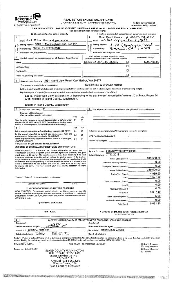 | Mailing Address: | 2780 SUN VISTA CIR CLINTON, WA 98236 | % Ownership: | 100.0000000000% |