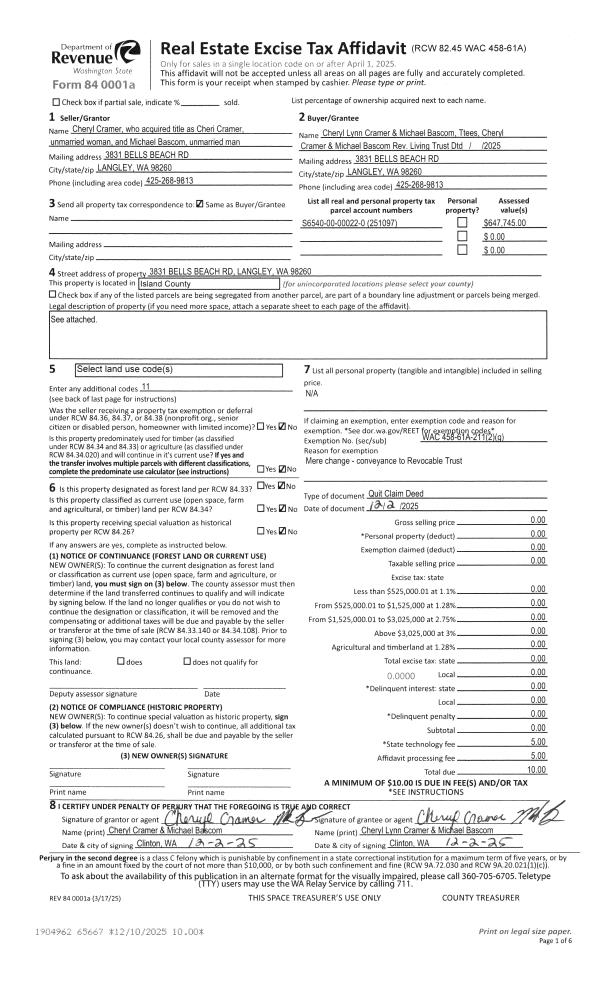 | Mailing Address: | 929 NW PROW ST OAK HARBOR, WA 98277 | % Ownership: | 100.0000000000% |