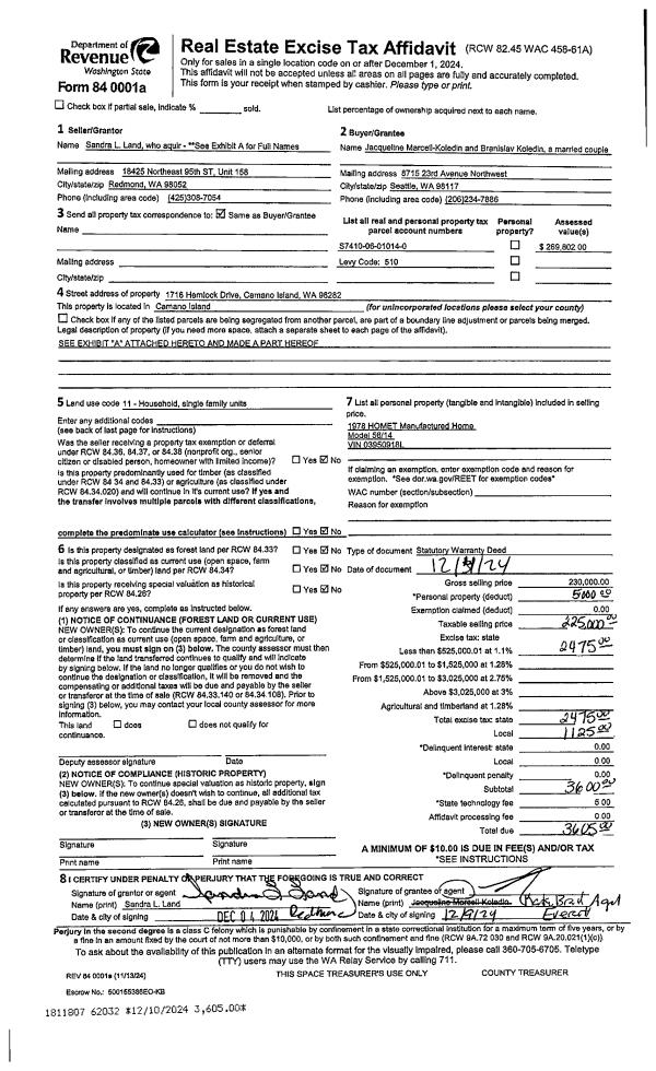 | Mailing Address: | 1320 N OAK HARBOR ST TRLR 182 OAK HARBOR, WA 98277-3548 | % Ownership: | 100.0000000000% |