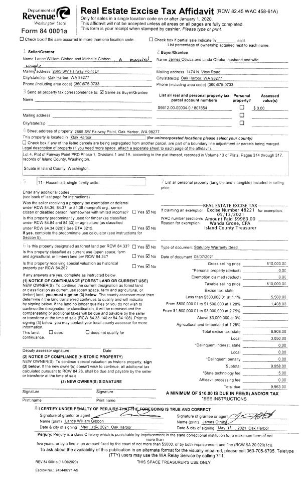 | Tax Area: | 712 - APPRAISER-S Whid Schl Dist, outside Langley, improved, greater than 1 acre | Land Use Code | 11 |