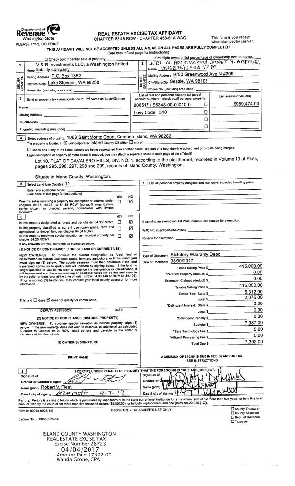 | 2 | 03/24/2017 | WD | Warranty Deed | BOWDEN, DAVID | INSLEE, FORREST | | | $1,325,000.00 | 28685 | 4419914 |
