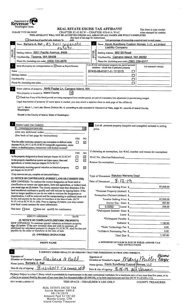 | Mailing Address: | 674 HAZZLE CT COUPEVILLE, WA 98239 | % Ownership: | 100.0000000000% |