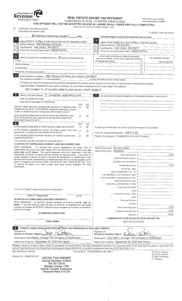 | Mailing Address: | 678 WILDFLOWER PL CAMANO ISLAND, WA 98282 | % Ownership: | 100.0000000000% |