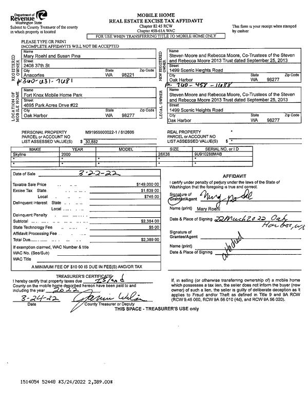 | Mailing Address: | HOLLIE J STOVER 315 SOLAR WAY CAMANO ISLAND, WA 98282 | % Ownership: | 100.0000000000% |