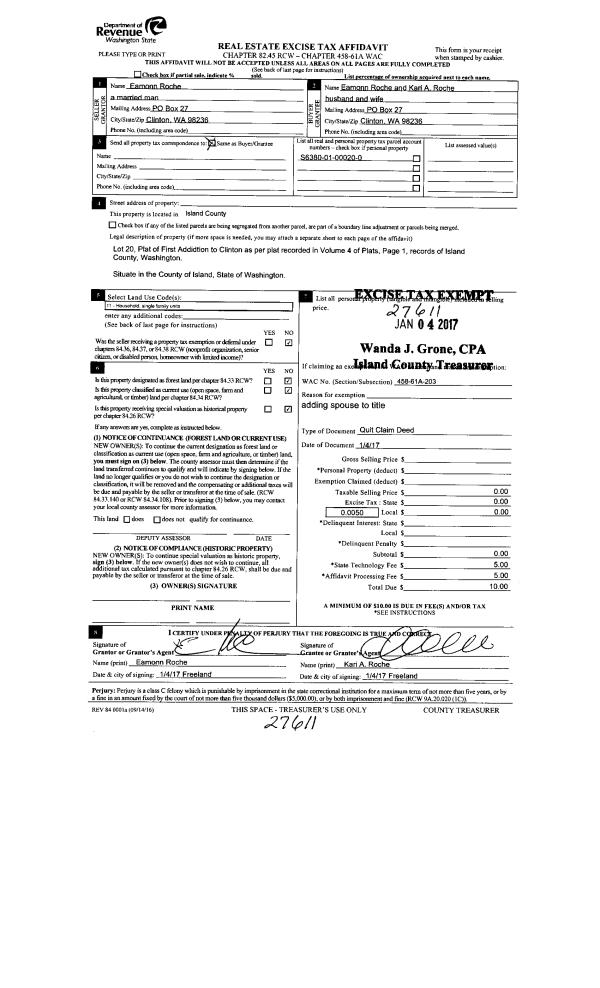 | Mailing Address: | 4912 JONES RD OAK HARBOR, WA 98277-9649 | % Ownership: | 100.0000000000% |