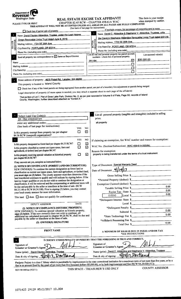 | Mailing Address: | 2728 STRAWBERRY POINT RD OAK HARBOR, WA 98277 | % Ownership: | 100.0000000000% |