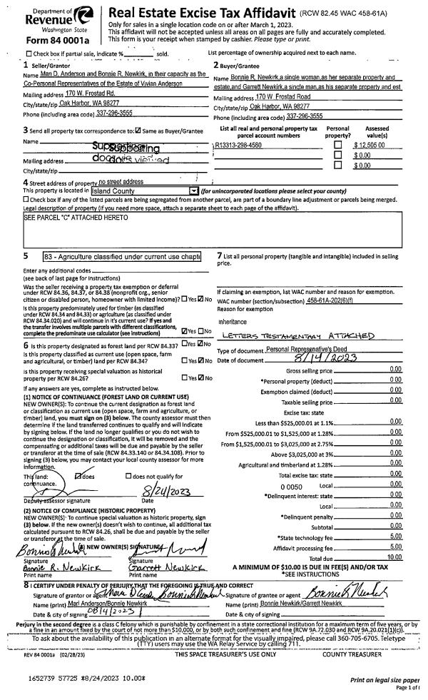 | Mailing Address: | MAUREEN F SYLVESTER 2794 STRAWBERRY POINT RD OAK HARBOR, WA 98277 | % Ownership: | 100.0000000000% |