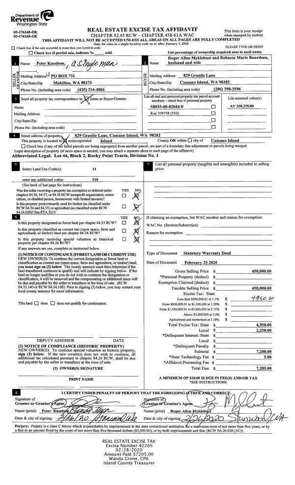 | Mailing Address: | LAURI A. NYGAARD JTWROS 3582 SARATOGA RD LANGLEY, WA 98260 | % Ownership: | 100.0000000000% |