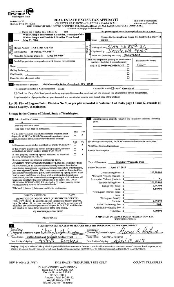 | Mailing Address: | 1041 SHADY LN OAK HARBOR, WA 98277 | % Ownership: | 100.0000000000% |