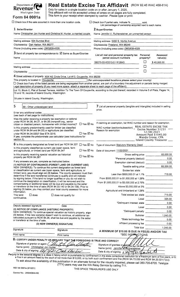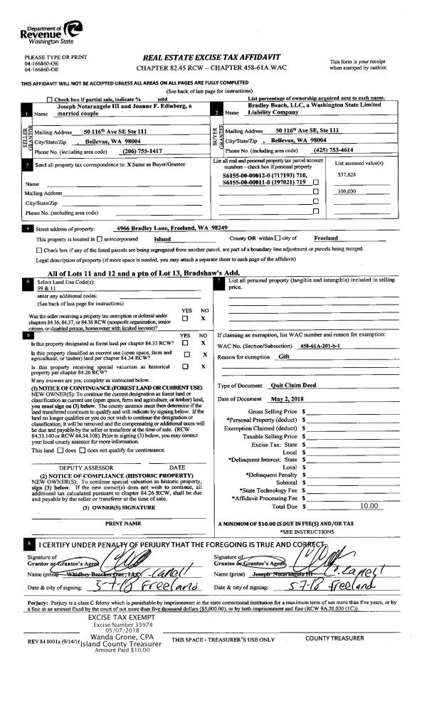 | 1 | 12/11/2020 | WD | Warranty Deed | KONNERUP TTEE, JUSTIN THOMAS | ISLAND COUNTY PUBLIC WORKS | | | $0.00 | 47914 | 4517272 |