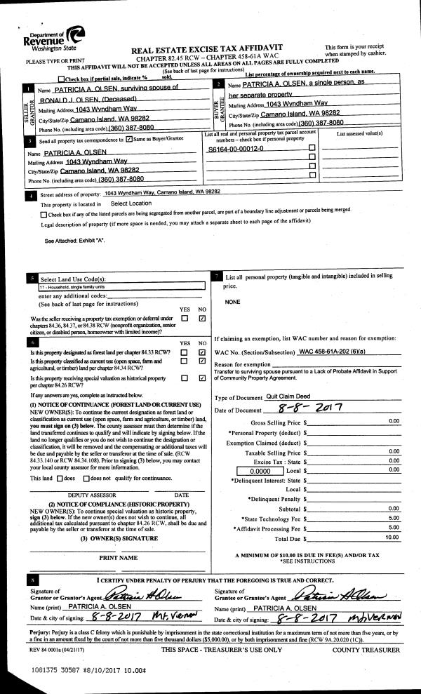 | Mailing Address: | YEKATERINA WILLIAMS 724 SW REGENCY DR OAK HARBOR, WA 98277 | % Ownership: | 100.0000000000% |