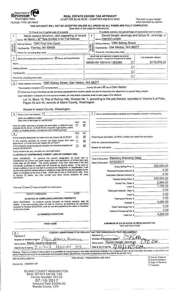| Mailing Address: | JUSTINE A PAHL 713 SW PUFFIN ST OAK HARBOR, WA 98277 | % Ownership: | 100.0000000000% |