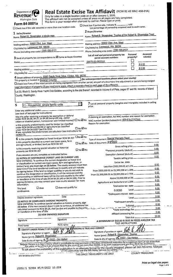 | Mailing Address: | 542 MAPLEWOOD LN CAMANO ISLAND, WA 98282-8764 | % Ownership: | 100.0000000000% |