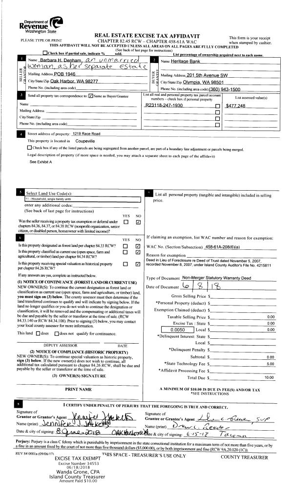 | Mailing Address: | GINGER L OTSTOTT 1031 BRIGHTTON PL CAMANO ISLAND, WA 98282 | % Ownership: | 100.0000000000% |