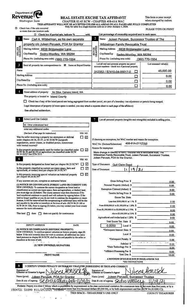 | Tax Area: | 712 - APPRAISER-S Whid Schl Dist, outside Langley, improved, greater than 1 acre | Land Use Code | 11 |
