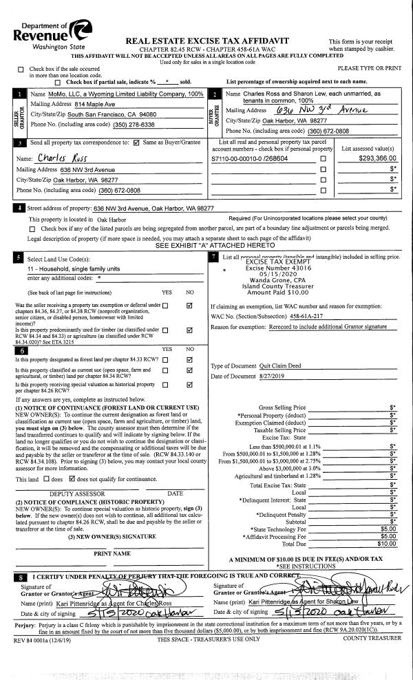 | Mailing Address: | CONNIE TRIPP 5477 BEACH BLUFF DR FREELAND, WA 98249 | % Ownership: | 100.0000000000% |