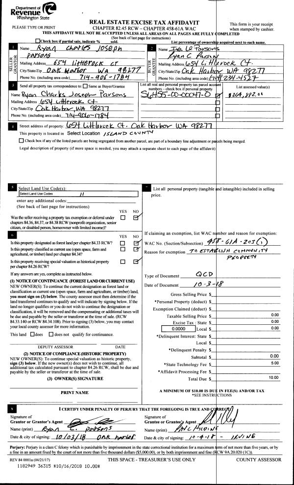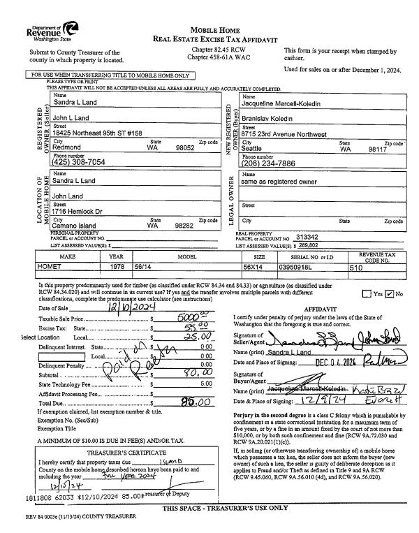 | Mailing Address: | 1320 N OAK HARBOR ST TRLR 170 OAK HARBOR, WA 98277 | % Ownership: | 100.0000000000% |