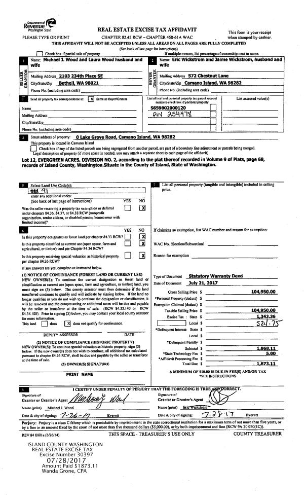 | Mailing Address: | 1015 LAWSON RD CAMANO ISLAND, WA 98282-7575 | % Ownership: | 100.0000000000% |