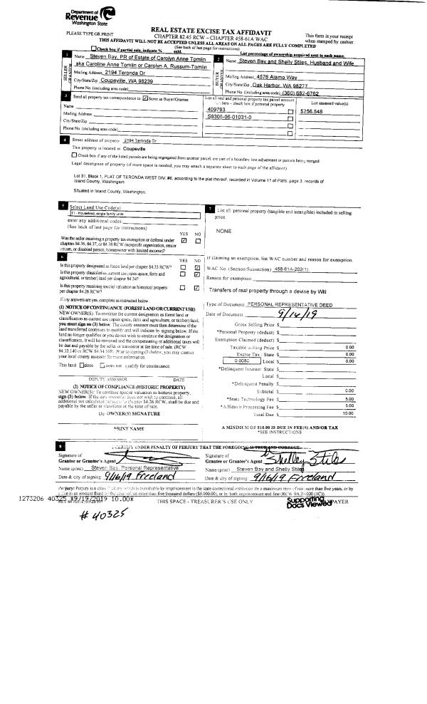 | Mailing Address: | AMBER FORD 903 MOUNTAIN HOME LN CAMANO ISLAND, WA 98282 | % Ownership: | 100.0000000000% |