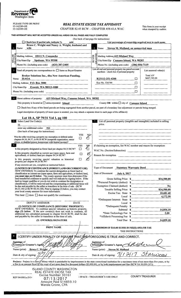 | Mailing Address: | SANDRA LEE MARIE GOODALE 907 HOPPY TRAIL WAY CAMANO ISLAND, WA 98282 | % Ownership: | 100.0000000000% |